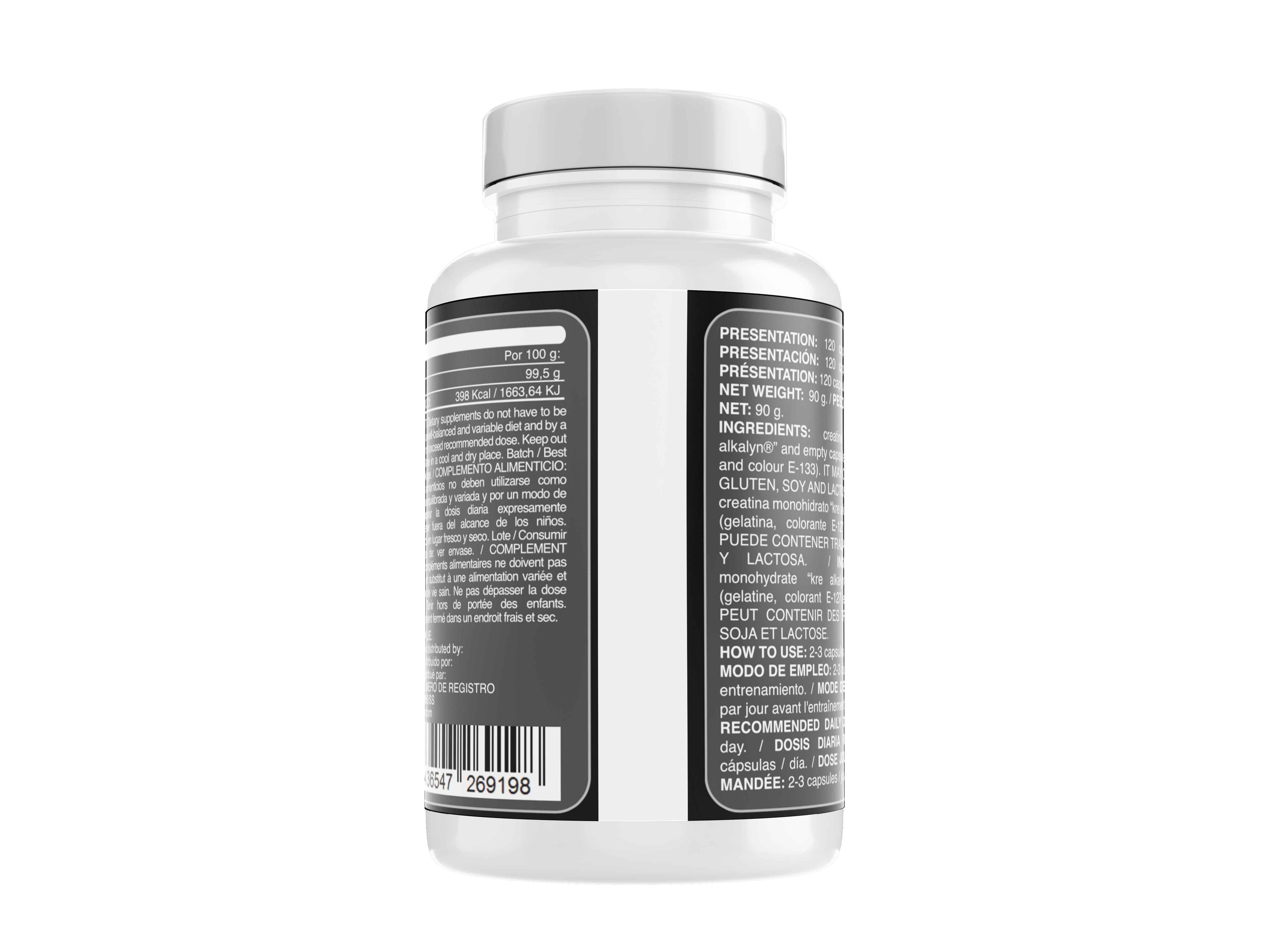Ingredientes: Creatina monohidrato con PH modificado (Kre-Alkalyn)®