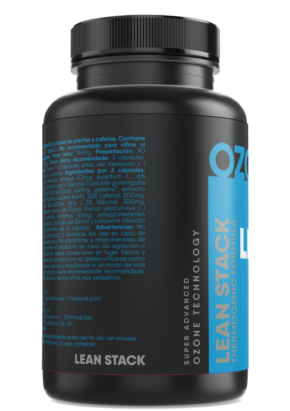 Ingredientes por 3 cápsulas: extracto seco de Naranja amarga (Citrus aurantium L., 6% Sinefrina) 450mg, extracto seco Garcinia (Garcinia gummigutta (l.) roxb., 60% ácido hidroxicítrico) 450mg, gelatina*, extracto seco de Guaraná (Paullinia cupana Kunth, 22% cafeína) 300mg, extracto seco de Sauce(Salix alba L.,3% Salicina) 300mg, maltodextrina, extracto seco de Fucus (Fucus vesiculosus L.) 180mg, Cafeína anhidra sintética 60mg, antiaglomerantes (estearato de magnesio y dióxido de Silicio) y colorante (dióxido de titanio)*. *Componentes de la cápsula.
